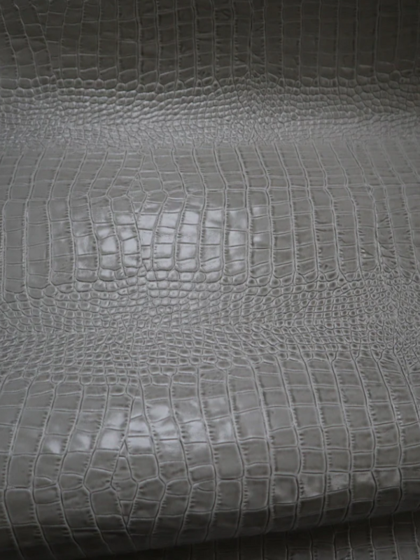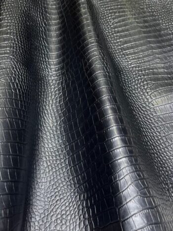 Embossed top grain cowhide in repeating belly print of crocodile. Aniline color top applied, hand antiqued effect with a glazed finish.