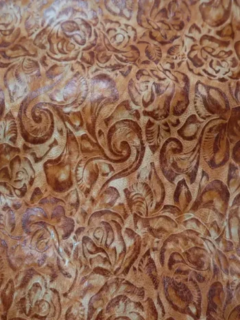 Embossed top grain cowhide in repeating belly print of crocodile. Aniline color top applied, hand antiqued effect with a glazed finish.