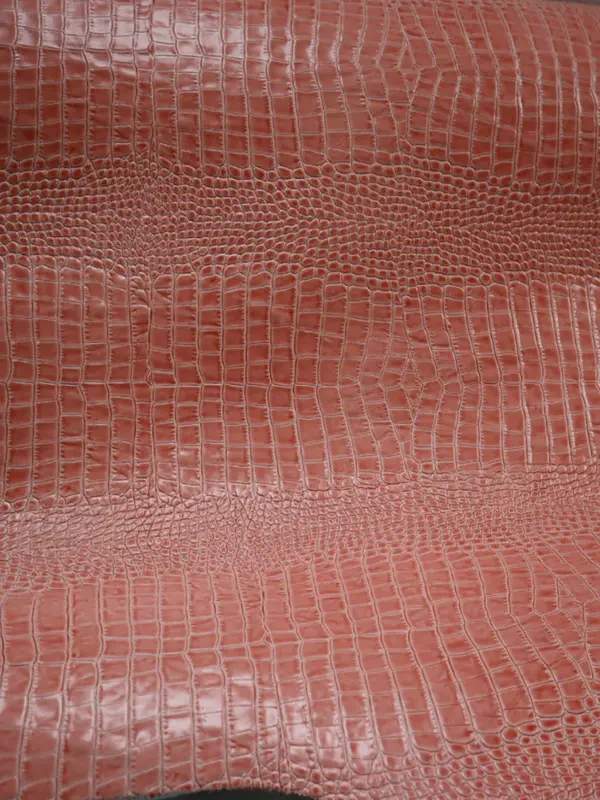Embossed top grain cowhide in repeating belly print of crocodile. Aniline color top applied, hand antiqued effect with a glazed finish.