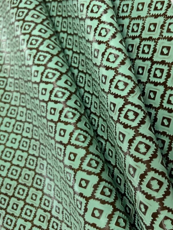Classic Thunder- made to embrace the American Navajo theme. This geometric design is easy to cut with deep valleys, creating highs and lows in color depth. Hand applied aniline dyes in multi color combinations.