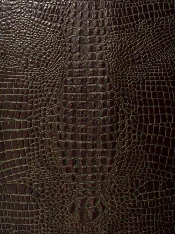 Embossed top grain cowhide in repeating hornback of crocodile. Hand Applied aniline dyes on top surface.