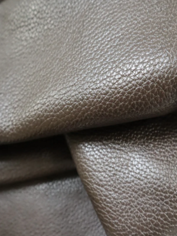 Embossed top grain cowhide in uniform large pebble design. Aniline drum dyed through crust, aniline top finished with semi shine. Soft Nappa type tannage.