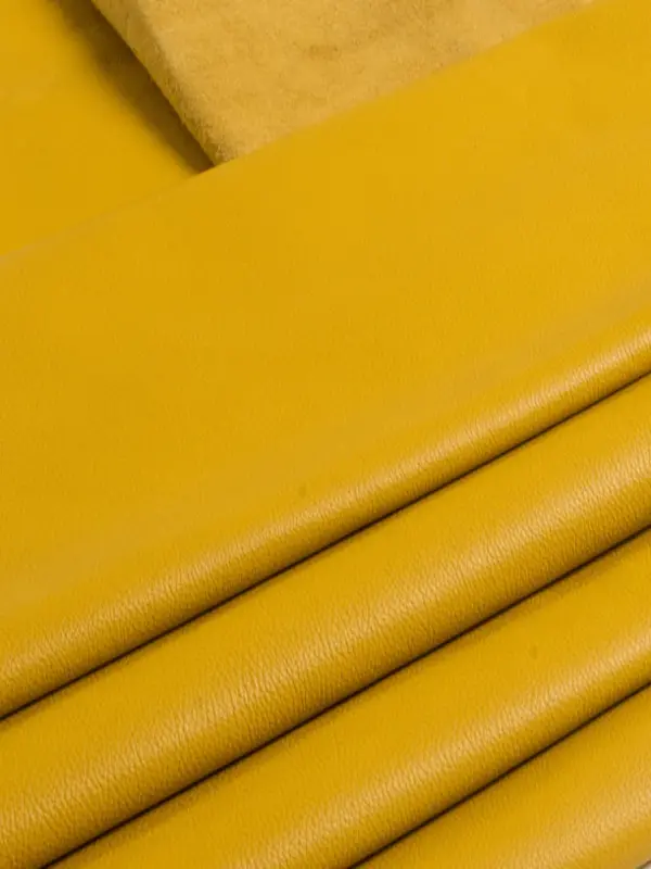 Soft smooth natural milled napa cowhide. Aniline drum dyed-through, semi-aniline top color, semi-shine top finish.