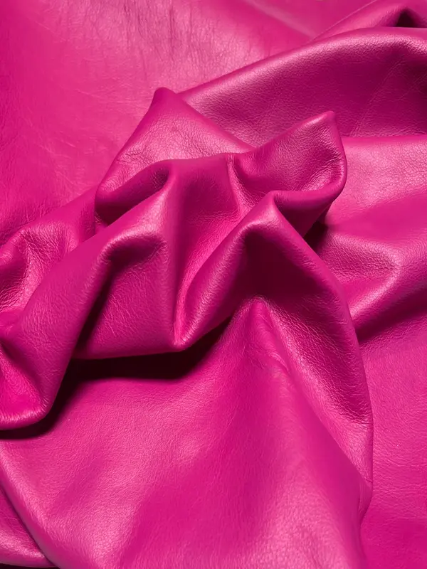 Soft smooth natural milled napa cowhide. Aniline drum dyed-through, semi-aniline top color, semi-shine top finish.