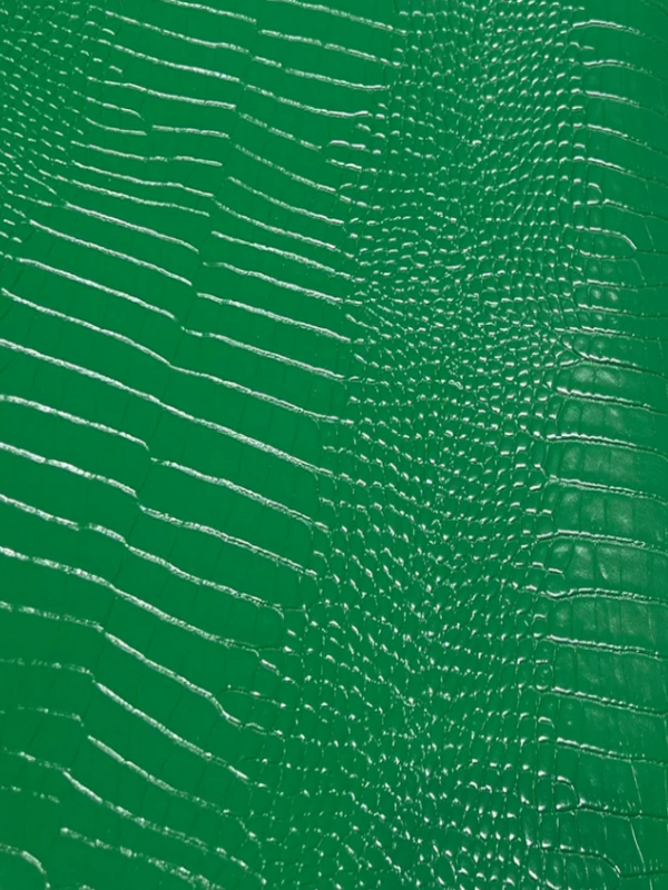 Embossed top grain cowhide in repeating belly print of crocodile. Aniline color top applied, hand antiqued effect with a glazed finish.