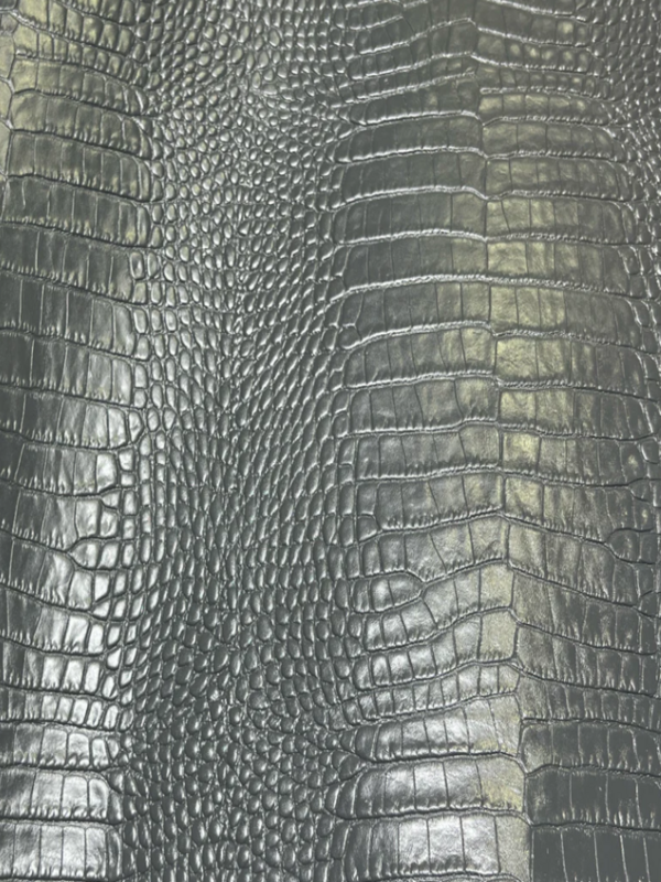 Embossed top grain cowhide in repeating belly print of crocodile. Aniline color top applied, hand antiqued effect with a glazed finish.